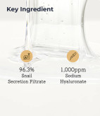 Snail Secretion Filtrate, Betaine, Butylene Glycol, 1,2-Hexanediol, Sodium Polyacrylate, Phenoxyethanol, Sodium Hyaluronate, Allantoin, Ethyl Hexanediol, Carbomer, Panthenol, Arginine